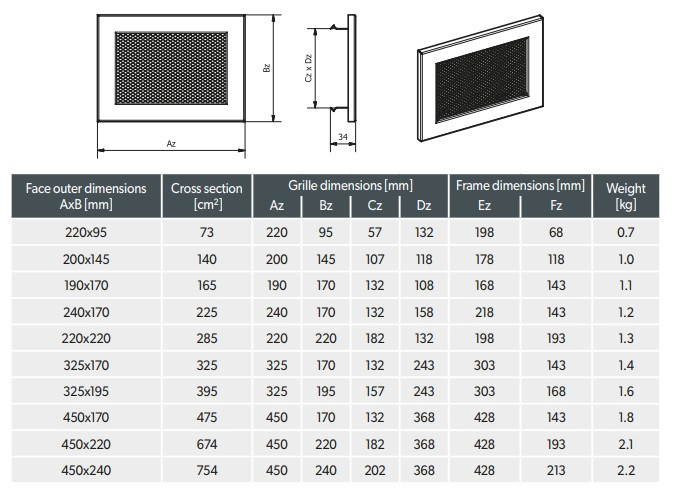 450 x 240 mm fehér kandalló szellőzőrács - értékcsökkent