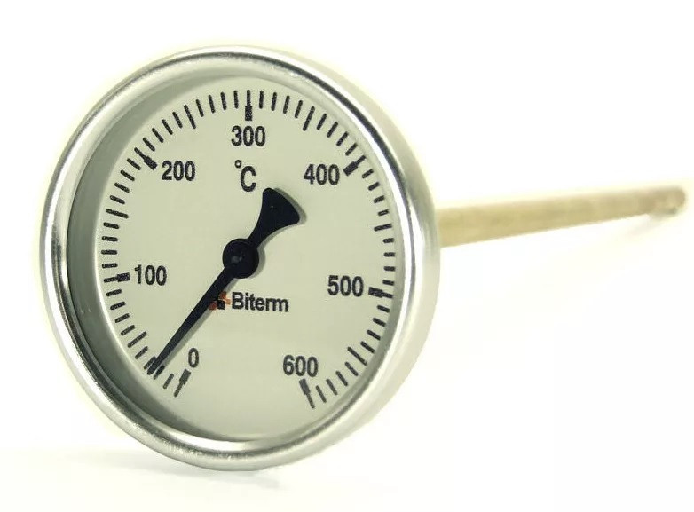 Bimetál kemence hőmérő 0-600°C átvezető cső nélkül 40 cm hosszú