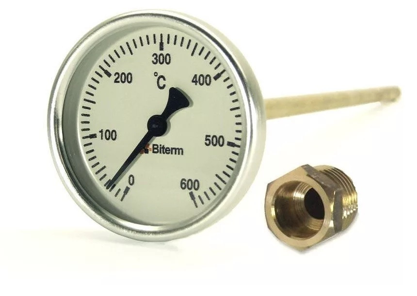 Bimetál kemence hőmérő 0-600°C átvezetővel 6 cm hosszú