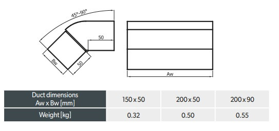 Fém függőleges állítható könyök 45°- 90° -ig 200x90 mm