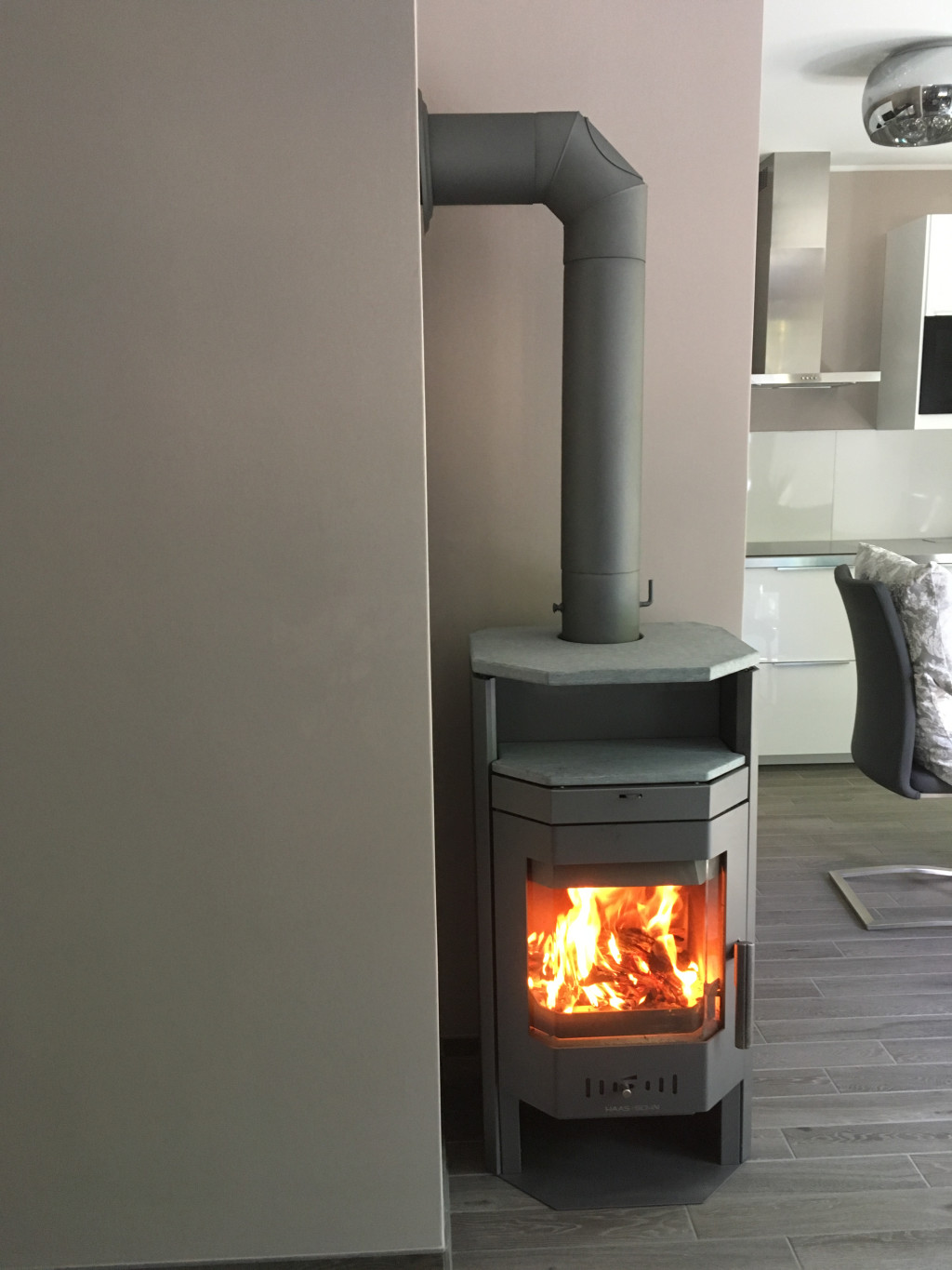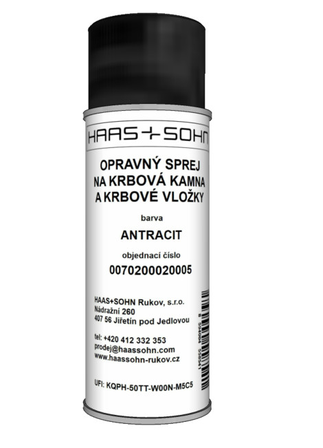 Gyári Haas+Sohn antracit színű hőálló spray, amely ideális kályhák, kandallók és füstcsövek esztétikus javításához.