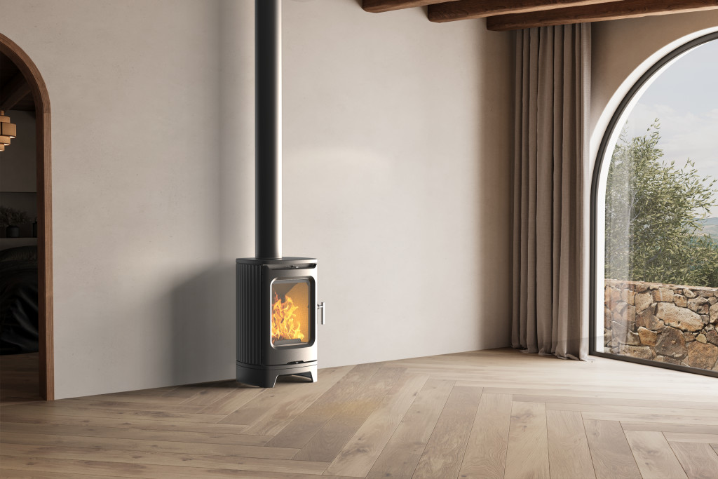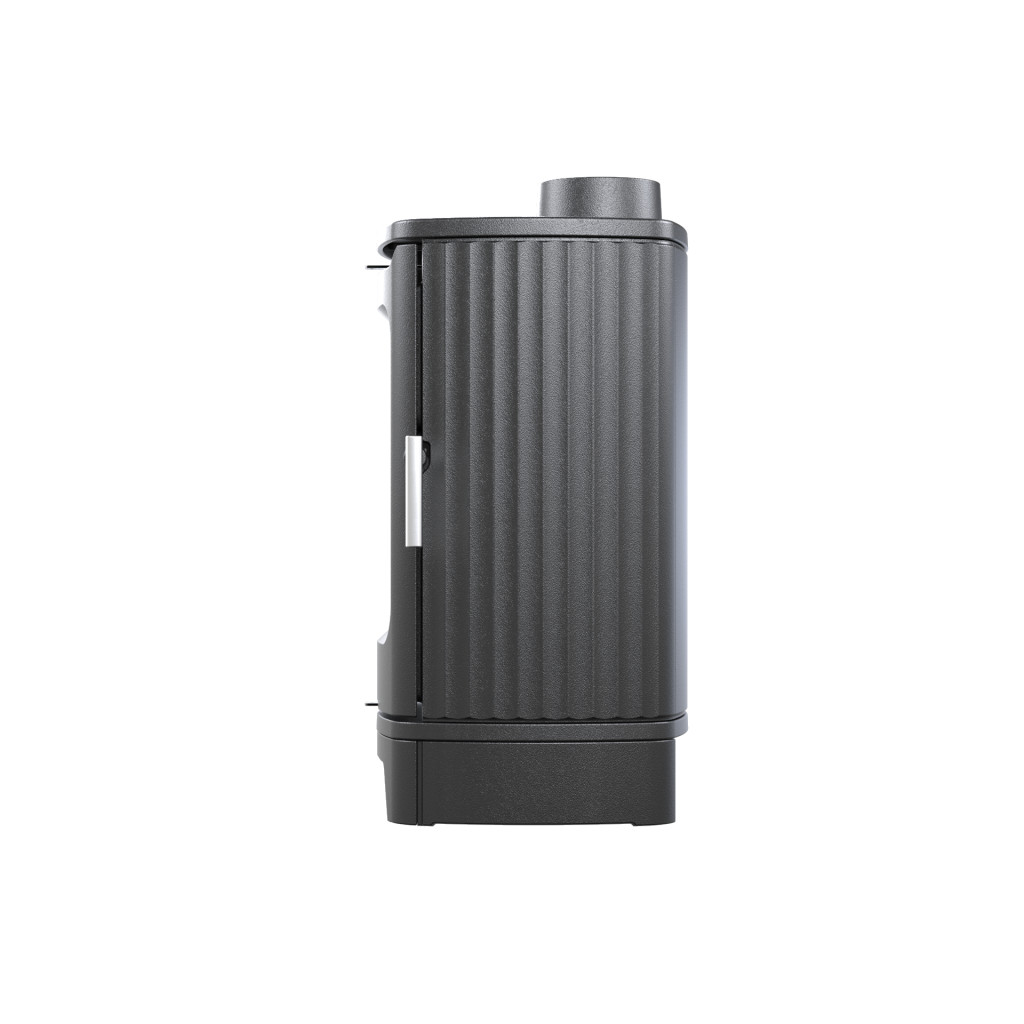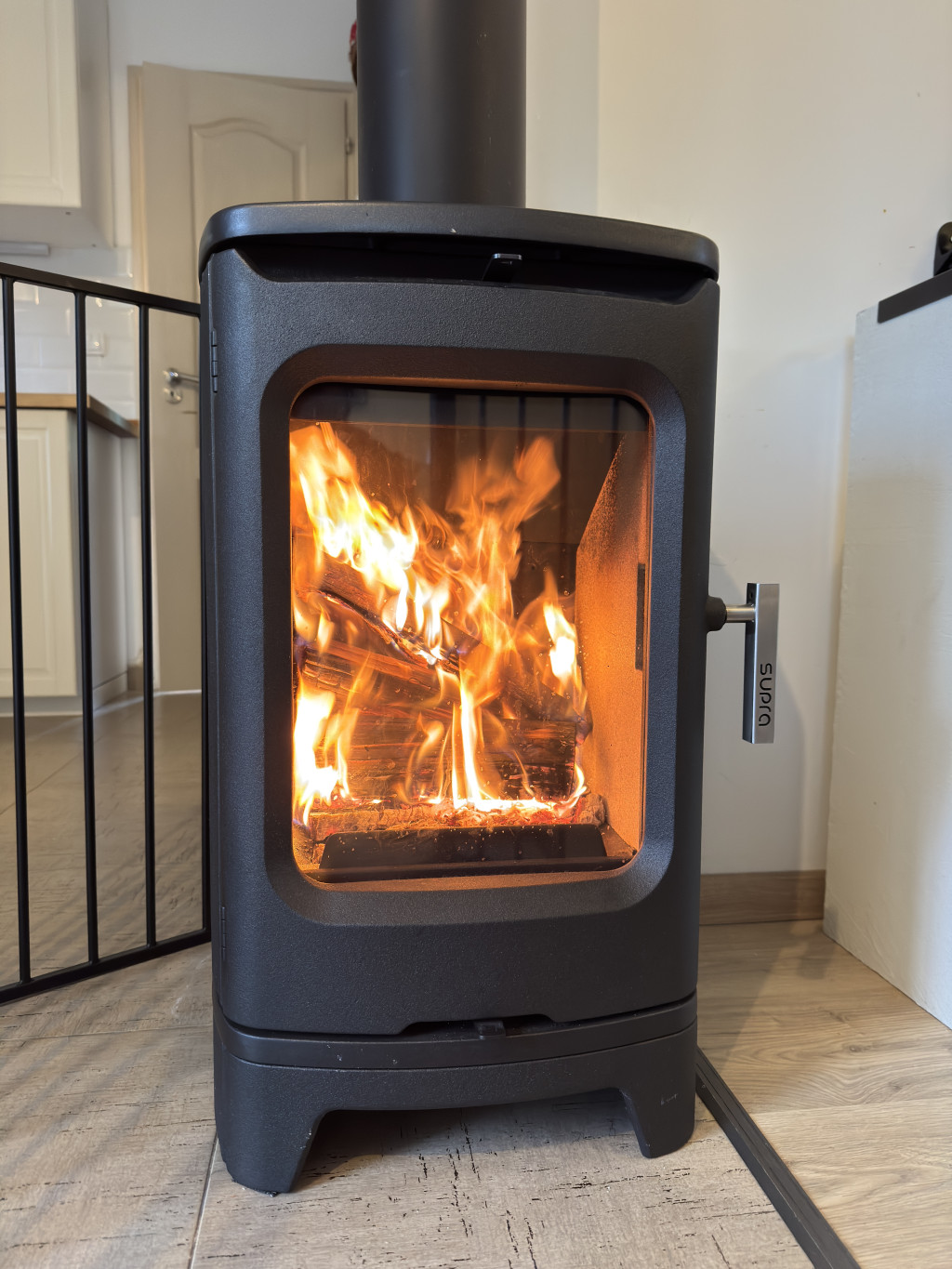 A letisztult, időtálló forma teszi igazán különlegessé. A bordázott oldalfalak erőt és robusztusságot sugallnak, míg a nagy üvegajtó panorámás kilátást kínál a lobogó lángokra. A SUPRA mérnökei külön figyelmet fordítottak arra, hogy a részletek tökéletes összhangban legyenek: az ajtó finoman ívelt sarkai, az elegáns fémkilincs és a szinte láthatatlan illesztések mind azt üzenik, hogy ez egy prémium minőségű kandallókályha, amely hosszú évekre szól.