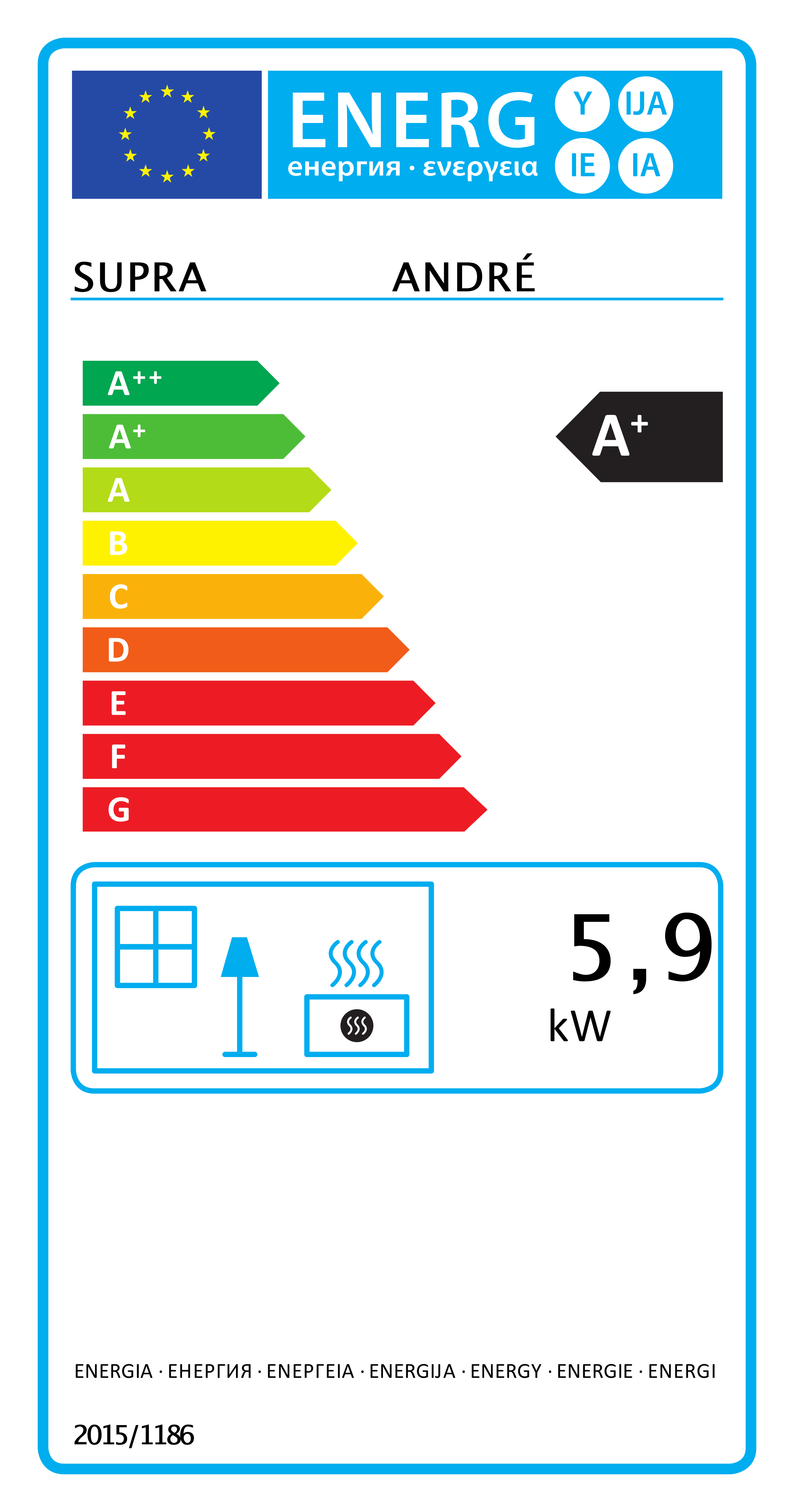 Műszaki szempontból az ANDRÉ 75 cm-es magasságával, 41 cm-es szélességével és 37 cm-es mélységével a kisebb modellek közé tartozik, ugyanakkor meglepően nagy teljesítményre képes. A 5,9 kW-os névleges teljesítmény és az A+ energiaosztály azt jelenti, hogy a kályha akár 40–60 négyzetméteres helyiségek fűtésére is ideális, mindezt alacsony tűzifa felhasználás mellett. A válaszható felső vagy hátsó 150 mm átmérőjű füstcső csatlakozás rugalmas telepítést tesz lehetővé.