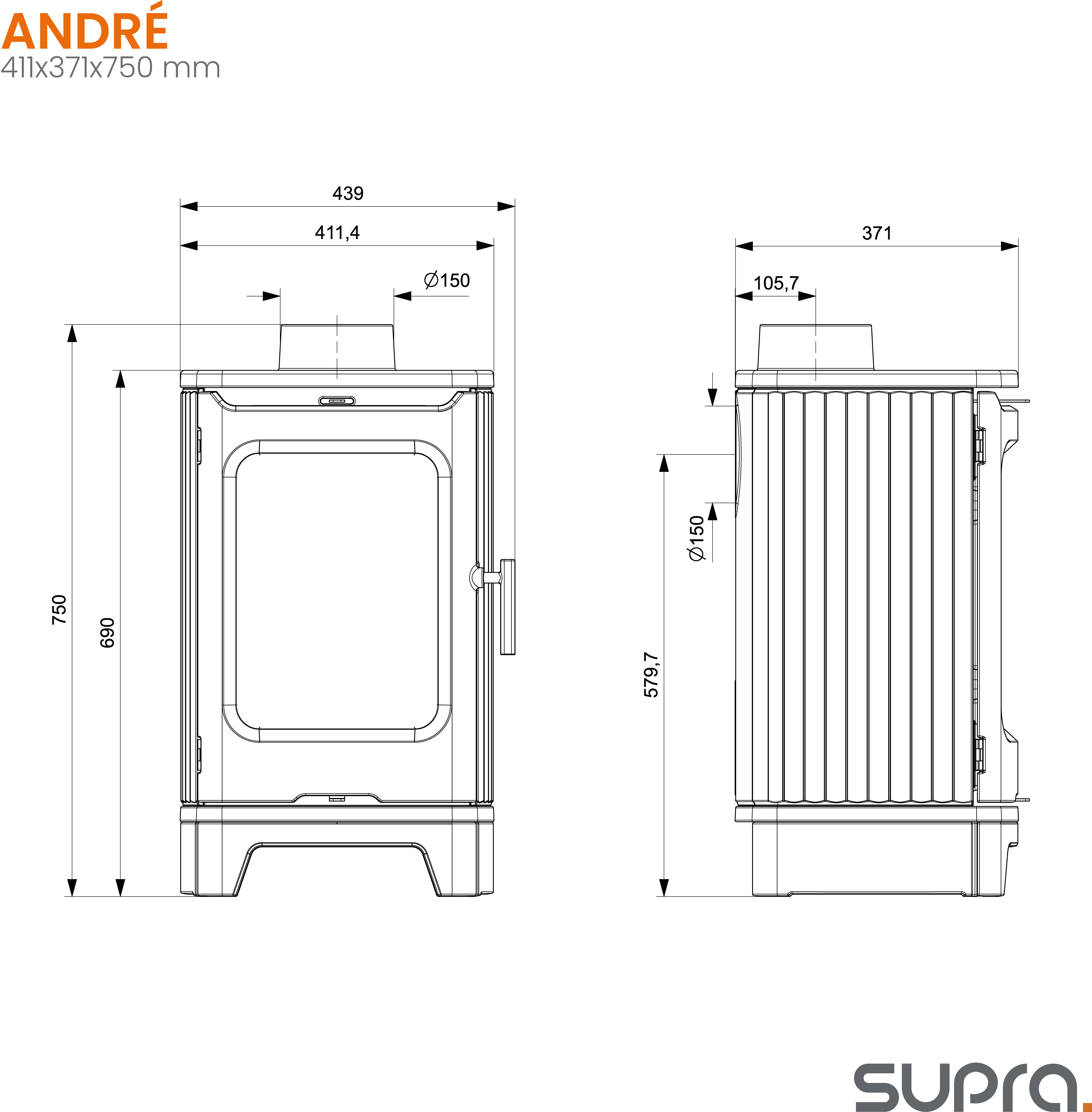 A SUPRA ANDRÉ egy kompakt méretű, öntöttvas kandallókályha, amely ideális választás nappalik, hétvégi házak vagy városi otthonok fűtésére. Letisztult, időtálló formavilágának köszönhetően bármilyen enteriőrben jól mutat, legyen szó modern vagy rusztikus környezetről.