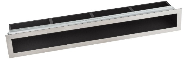 Minimál kandalló rács szálcsiszolt inox/rozsdamentes acélból.Szabad keresztmetszet: 210 cm ²Maximális alkalmazási hőmérséklet 180 °CSpeciális színtartó porfestésBeépítőkeret: Horganyzott acéllemezEsztétikus, hőálló, színtartó és korróziómentes.Ez a megoldás a modern és minimál kandalló építéshez tökéletes.INOX, azaz rozsdamentes acél- saválló, vagy nemesacél fémötvözetet nevezzük inox-nak.Előnyös tulajdonságaik miatt – korrózióálló, saválló - a kandallóbetétek gyártásában is nélkülözhetetlen anyag.Esztétikai megjelenése, hőállósága folytán dekoratív kandalló szellőző készül belőle.Tisztítása:Korrózióra ugyan nem hajlamosak, de a szokványos szennyeződések miatt takarításuk alkalmanként szükséges.Megfelelő tisztítással elérhetjük, hogy hosszú távon szépek maradjanak.Lényeges, hogy a takarítószer ne ártson. Maró anyagot ne használjunk, viszont a szennyréteget fel tudja lazítani illetve el is távolítsa azt.Makacsabb, elszíneződött foltok eltüntetéséhez használhatunk folyékony súrolószert, puha textíliát vagy szivacsot, de csak kíméletesen, óvatos dörzsöléssel. A tisztítószerek maradékát mindig alaposan távolítsuk el, és minden esetben töröljük szárazra. Ehhez konyhai papírtörlőt vagy mikroszálas törlőt használjunk.
