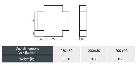 Fém négyágú lapos elosztó idom 200 x 90 mm